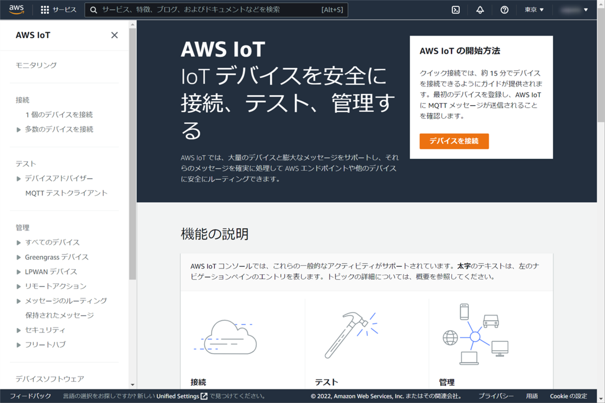 ここまでの作業でAWS IoT Coreの準備が完了しました。