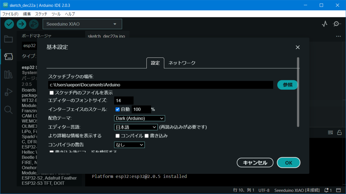 Arduino IDEでの設定