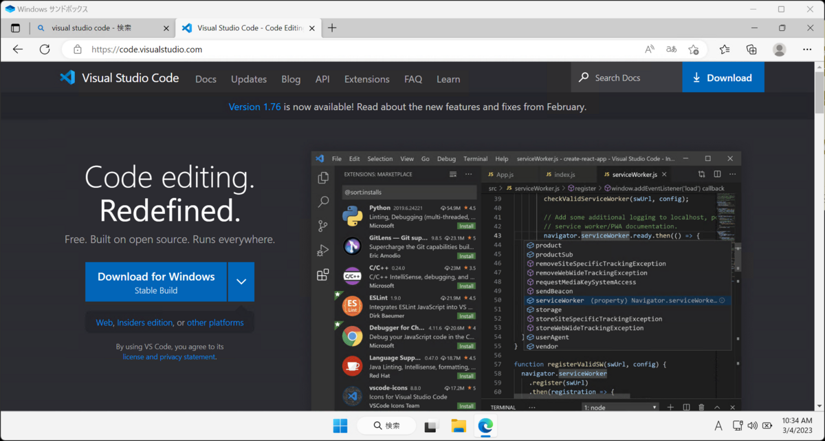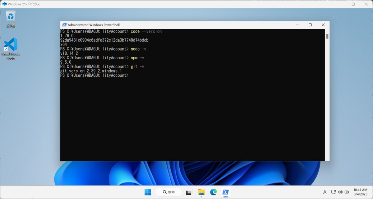 Windows Sandboxは全くの素の状態(ネットワーク接続まではできています)なので、少しだけ開発環境の準備をします。