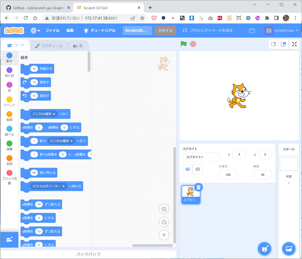 そこで、今回はGitHubに公開されているソースコードからScratchを起動させる事ができます。ということでまず今回はGitHubに公開されたscratch-guiを使用して